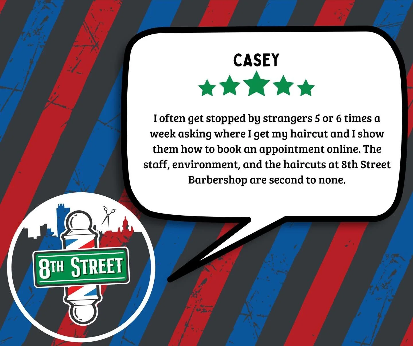 Located in downtown Huntington, 8th Street Barbershop is home to five master barbers: Jordan Walker (owner), Nathan Demoss, Triston Stewart, Seth Bratchett, Arrick Montgomery, and Jalen Pennington. For the past eight years, we have proudly served the Huntington community. At 8th Street Barbershop, we take pride in offering fast, efficient service without compromising on quality, ensuring results that exceed our clients' expectations. Walk-ins are solely by chance; appointments are guaranteed. Book online with your preferred barber below or call the shop.