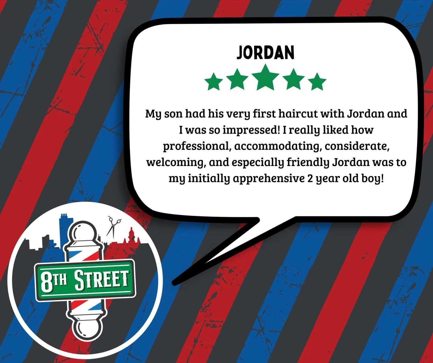 Jordan owns and runs the shop. He graduated from Tri-State Barber College in 2015 and opened 8th Street Barbershop the following year.